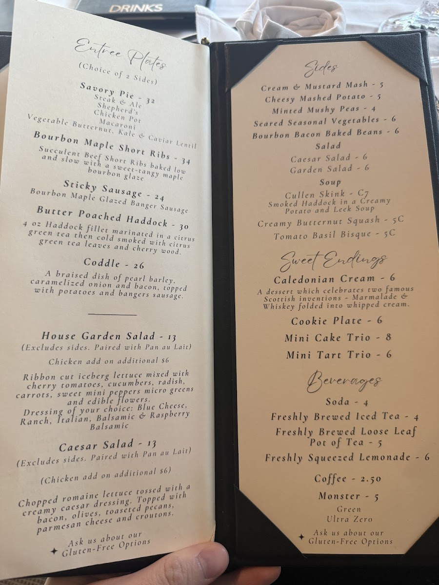 For those simply in need of a pick-me-up, the Tea Service menu includes offerings like Tea-To-Go, Pick-Me-Up Tea, and the indulgent Cream Tea, which pairs wonderfully with the house-made baked goods. Beverages like Fountain Drinks, Lemonade, Hot Chocolate 12 Oz, and Coffee round out the drink selection, catering to various tastes.