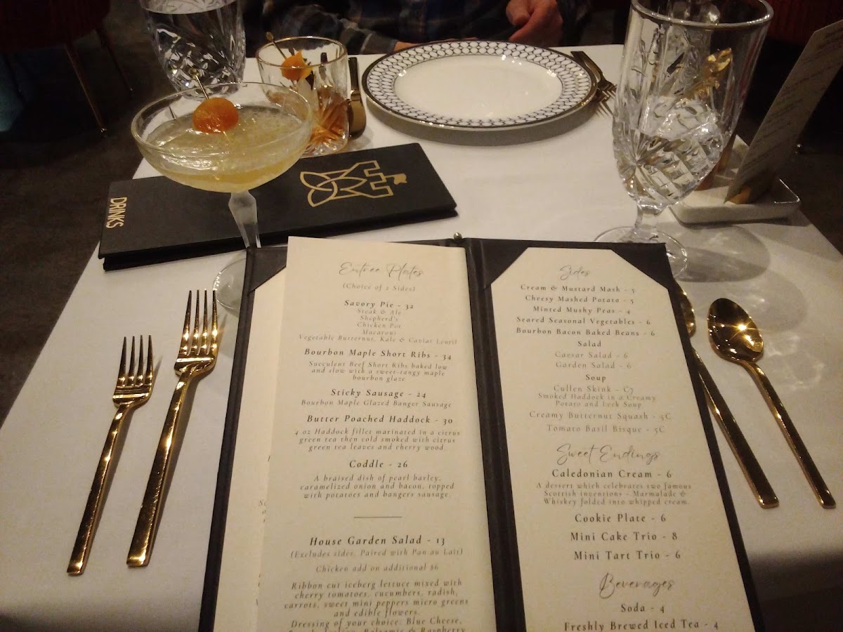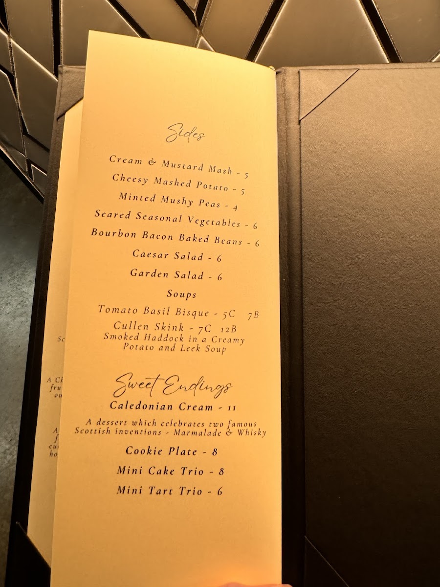 The Galettes are another highlight, featuring options like Ham and Gouda, Roasted Butternut Squash and Kale, and Rustic Mushroom - all fresh and bursting with flavor. Additionally, the Small Plates and Appetizers section offers savory bites like the Scottish Sausage Roll, Haggis Patties and Whisky Sauce, and Irn-Bru Chicken Wings, all perfect for sharing or enjoying as a light meal.